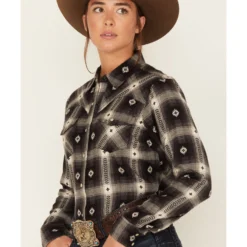 Ariat Women’s R.E.A.L. Southwestern Plaid Print Thunderstorm Long Sleeve Snap Western Shirt