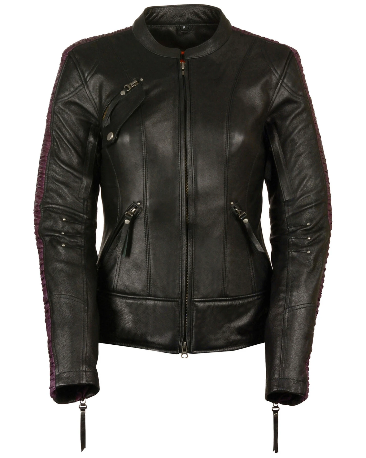 Ride the wind in style in this gorgeous jacket from Milwaukee Leather. Made from premium leather, this jacket has beautiful embroidered and studded detail along the back with leather rushing highlighting the sleeves. The double set side buckles adjust for a custom fit, and concealed weapon pockets allow you to keep your firearm close at hand for protection. Whether you love to ride or simply love great style, you’re sure to love this stunning leather jacket from Milwaukee Leather.